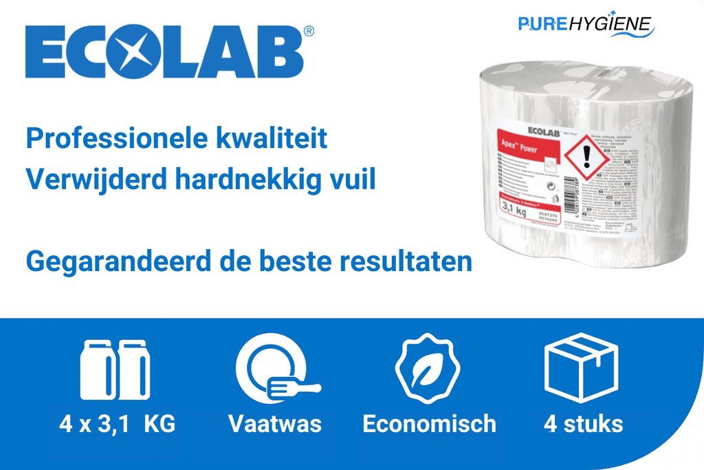 Ecolab Apex Power ist ein hochkonzentriertes Geschirrspülmittel mit bleichender Wirkung. Dieses Geschirrspülmittel ist für den Einsatz mit automatischen Dosiersystemen in professionellen Geschirrspülmaschinen geeignet. Apex Power ist für weiches bis mittleres Wasser geeignet und mit alltäglichem Geschirr wie Glas, Porzellan und Edelstahl kompatibel.