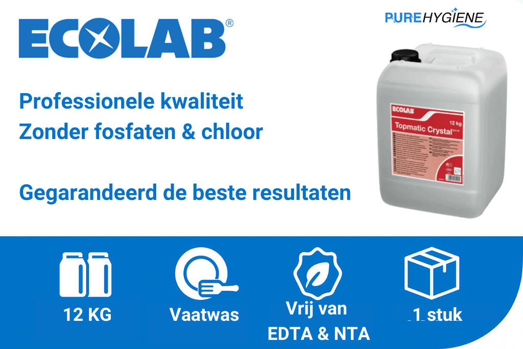 Ecolab Topmatic Crystal Special enthält Inhaltsstoffe, die starken Schmutz entfernen und garantiert beste Ergebnisse mit nur einem Durchlauf durch die Spülmaschine. Das Produkt kann nur mit Ecolab-Dosiersystemen verwendet werden. Flüssiges Geschirrspülmittel, das speziell für Gläserspülmaschinen entwickelt wurde. Das Topmatic Crystal ist ein niedrigalkalisches Geschirrspülmittel ohne Phosphate und Chlor und sicher für die Reinigung von empfindlichem Geschirr.