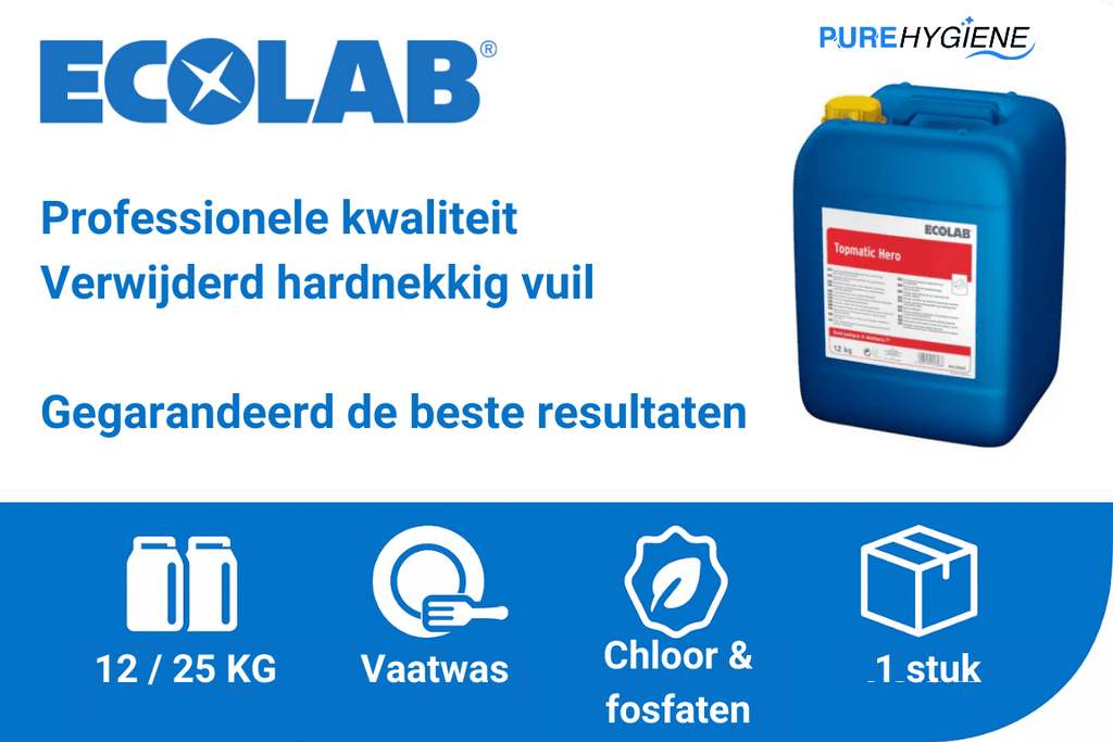 Ecolab Topmatic Hero ist ein hochkonzentriertes Geschirrspülmittel, das Phosphate und Chlor enthält. Es enthält Inhaltsstoffe, die alle Flecken entfernen und garantiert beste Ergebnisse in nur einem Durchlauf in der Spülmaschine, sodass Sie es nicht wiederholt waschen müssen. Das spart Zeit und reduziert den Energie- und Wasserverbrauch.