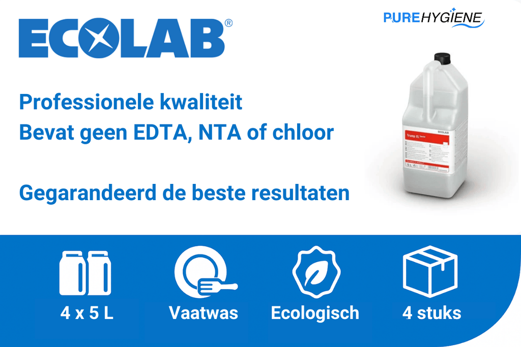 Ecolab Trump XL Special ist ein flüssiges Geschirrspülmittel, das für die Verwendung mit mittelhartem bis hartem Wasser geeignet ist. Es handelt sich um ein ökologisches Produkt, das selbst hartnäckigste Flecken mühelos entfernt.