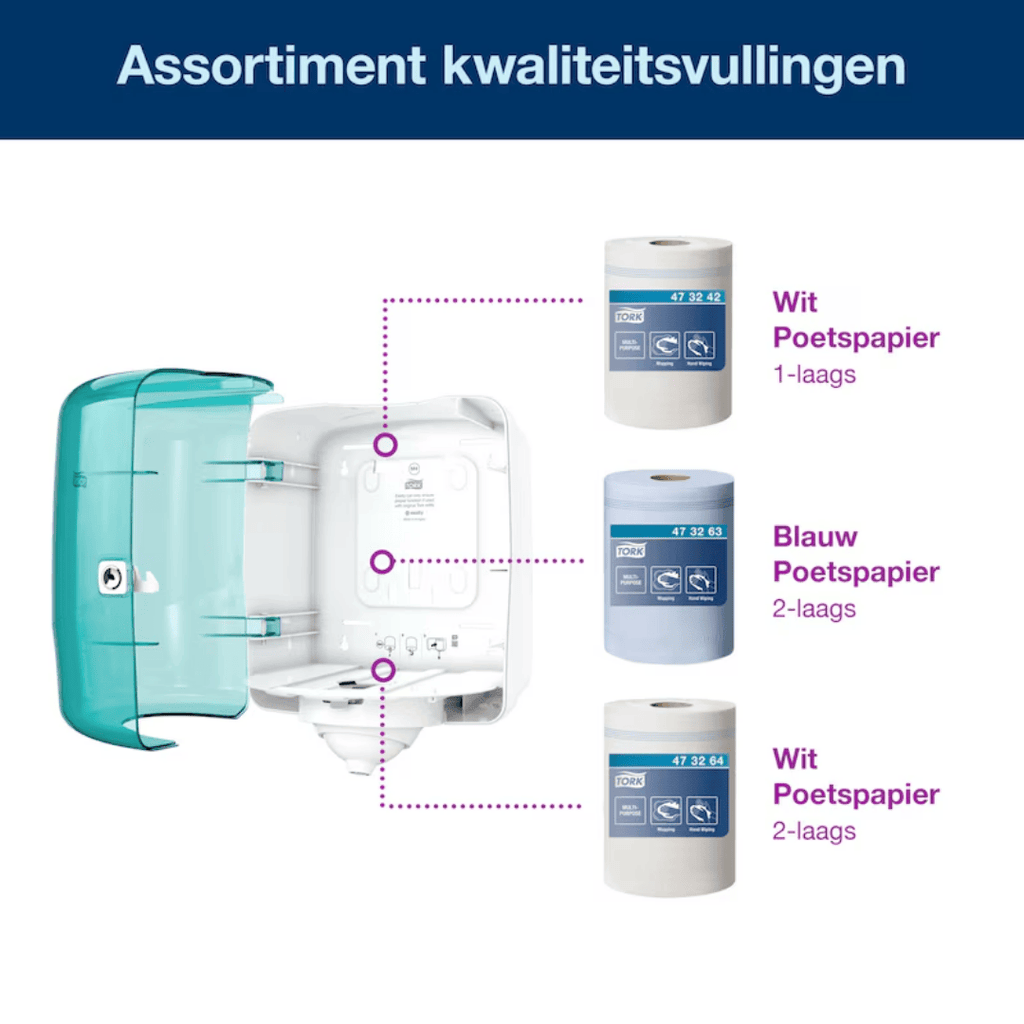 De Tork Reflex 473180 M4 Poetspapier Dispenser is ideaal om de handen en oppervlakken mee af te vegen in professionele omgevingen. De dispenser werkt met vel voor vel dosering, wat zorgt voor extra hygiëne en verminderd verbruik. Dit zorgt voor tot wel 37% minder gebruik. De dispenser is makkelijk bij te vullen en te gebruiken met één hand.