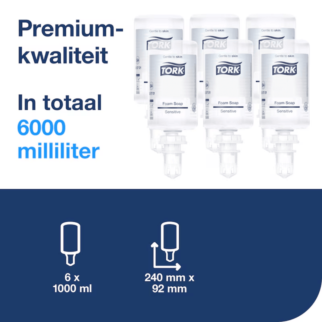 Tork 520701 Premium Handzeep is perfect geschikt voor mensen met een droge of gevoelige huid. De zeep is allergievriendelijk en bevat geen parfum of andere toegevoegde kleurstoffen. (Gecertificeerd door ECARF) Geschikt voor in de Tork Zeep en Handdesinfectie Dispenser S4. De flessen van dit product zijn gemaakt van 30% gerecycled plastic.