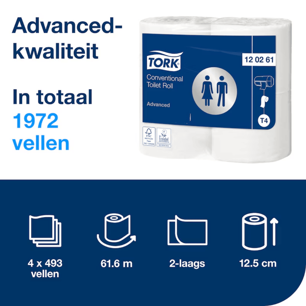 Tork 120261 Traditioneel Toiletpapier biedt de comfort van huis naar uw sanitaire ruimte. Dit papier is perfect als kosten en prestaties van belang zijn. De rollen zijn extra lang waardoor de dispenser minder vaak bijgevuld hoeft te worden.